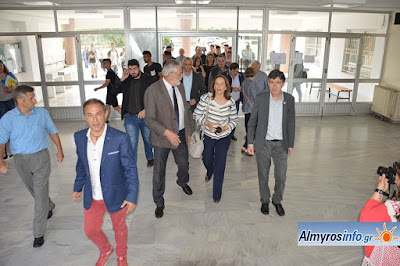 Το 1ο ΕΠΑ.Λ. Αλμυρού επισκέφθηκαν την Παρασκευή 11 Μαϊου 2018 ο Υφυπουργός Παιδείας, κ. Δημήτρης Μπαξεβανάκης, η Υφυπουργός Οικονομικών κα Κατερίνα Παπανάτσιου και ο προϊστάμενος της Δ/νσης Επαγγελματικής Εκπαίδευσης της Γεν. Δ/νσης Σπουδών Α?/θμιας και Β?/θμιας Εκπαίδευσης του ΥΠ.Π.Ε.Θ κος Μουστάκας Γεώργιος. Παρεβρέθηκαν η Περιφερειακή Διευθύντρια Εκπαίδευσης Θεσσαλίας Ελένη Αναστασοπούλου, ο Διευθυντής Δευτεροβάθμιας Εκπαίδευσης Μαγνησίας Σωκράτης Σαβελίδης,